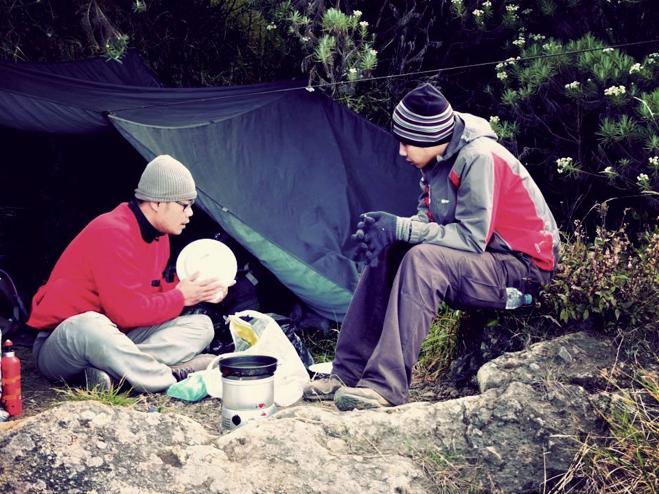 Orang sebelah kiri: you call yourself a climber???! you didn’t even washed your plate properly man!