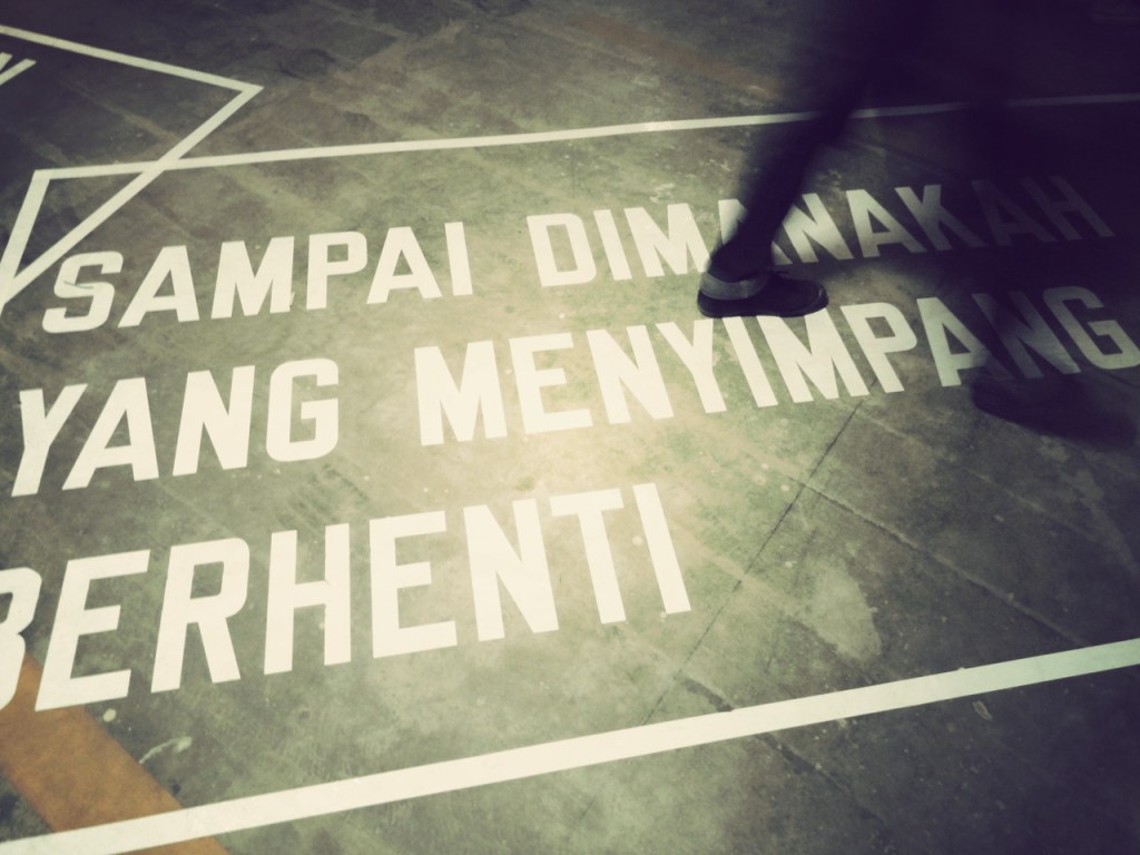 The Jakarta Biennale opening night was an event best enjoyed in shorts, slippers, and hair pulled up in a bun. Underground parking lots are a rather unusual place for public gathering, yet it is the center stage of the bi-annual contemporary public art exhibition. Beads of sweat formed on my forehead and slowly trickled down my chin. It was easy to get lost in all the art displays, but for one’s own sake, it was best to stay alert. Most of the crowd moved sluggishly, but there were zig-zaggers with flaming cigarettes between their fingers and cameras poised in the air. There were puddles of water on the ground from one of the performances and the slippery cement floor proved to be rather tricky for those in heels. One needs to be tactical in maneuvering the atypical art space, just like how one would in the streets or markets of Jakarta.