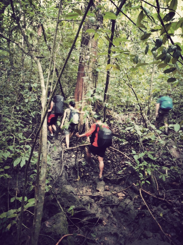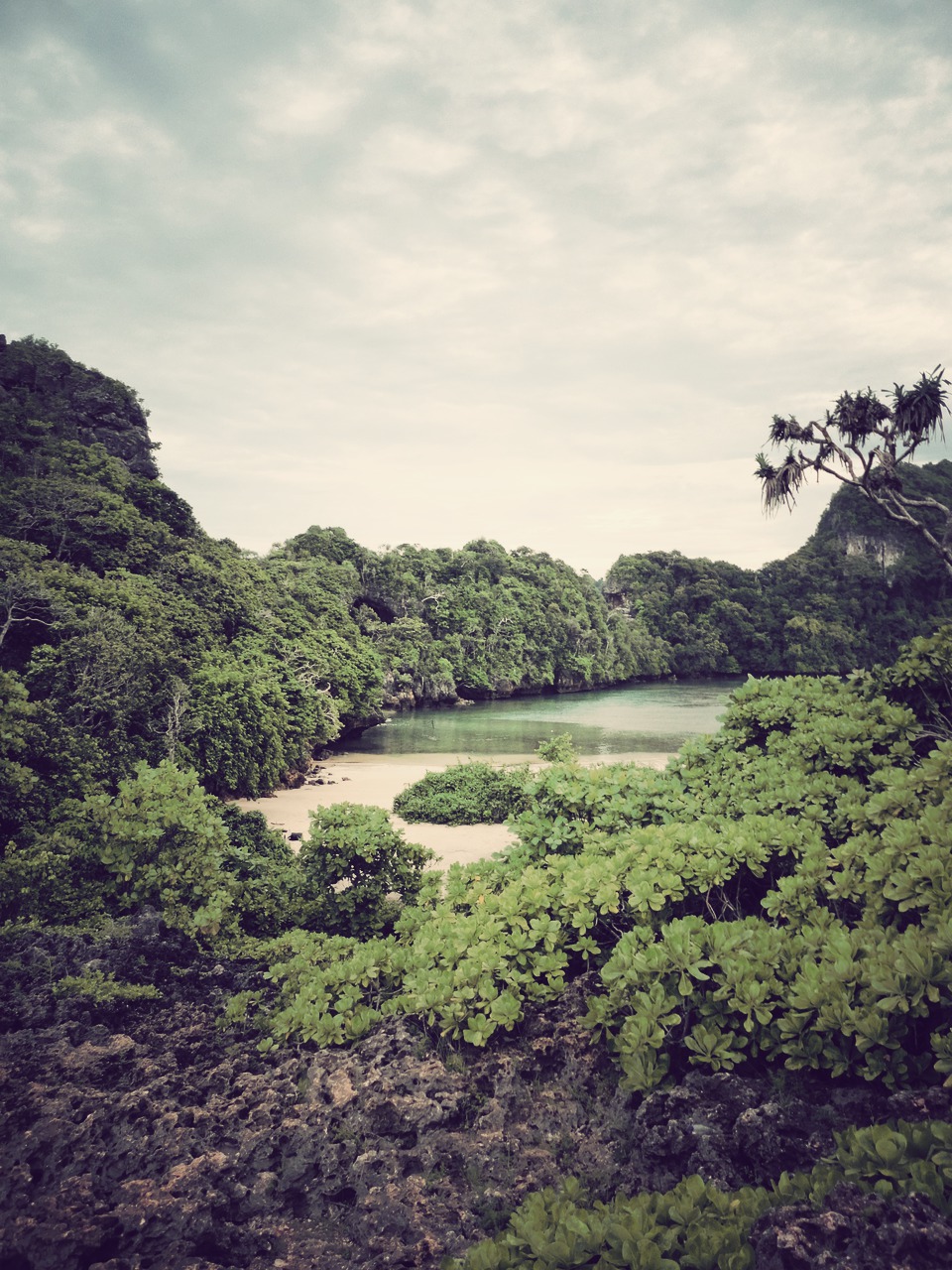 The photos from our camping trip to Pulau Sempu, three hours away from Malang, brought back a flood of memories. I remember the ankle-deep mud burying my feet with every step I take on the hilly trek and that the effort needed was doubled when the rain fell. I remember punching Twosocks in the shoulder out of frustration, the pride in being able to keep up with my friends and our guide and finish the trek in two hours time, the fierceness of the Indian ocean smashing against the cliffs surrounding the Segara Anakan lagoon, and the sheer glee of dropping our backpacks, shoes, socks, and clothes to the beach, and swimming around the sparkling green lagoon to wash away the mud and tiredness.