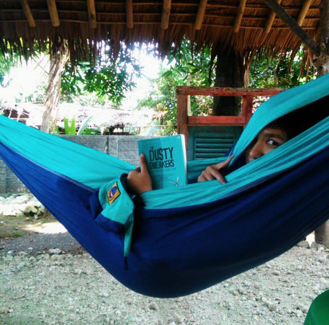 In Batu Karas with Vira, where the hammock matches the book perfectly.