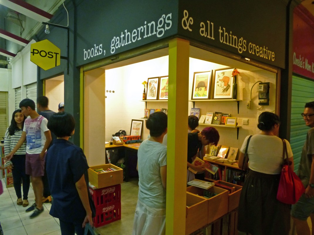 Almost immediately, we thought of a pop up space that offers something different every time it opens. A space that could be a gallery one day and a venue for poetry slams the next, but always have good books around. We are bookworms, you see. The name POST popped up, it sounds fitting as we imagined a post for creative individuals and communities to share their work with the public, and as Steven would say, the idea to do such a thing in a traditional market is post-modern. We booked our kiosk the next week.
